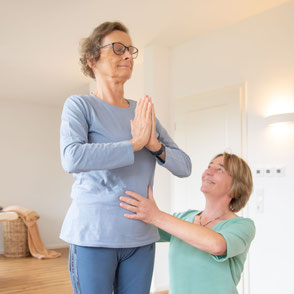 In meiner Arbeit integriere ich Yoga als sanften, individuell anpassbaren Weg zur Selbstwahrnehmung. Sie werden von mir so angeleitet, dass Sie Ihre körperliche Belastungsgrenze wahrnehmen und lernen, diese behutsam zu erweitern.